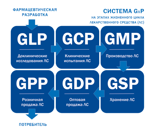 GxP (Good … Practice, Надлежащая … практика) — признанная во всем мире система обеспечения качества лекарственных средств. Система GxP охватывает все этапы жизненного цикла лекарственного средства, от фармацевтической разработки, испытаний, изготовления, хранения до использования конечным потребителем, а именно:
